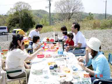 4/14、たあ坊さん一家、そしてまささんの掲示板でやりとりさせて頂いた、Shinさん一家、そしてうちの家族の3家族でアーシングオフミを兼ねたピクニックオフミを兵庫県は三田のとある公園で行いました\(^o^)/ みんなでお弁当を持ってきて昼食中です。 ここの公園は遊具もたくさんあり、芝生も広くとても良い公園でした。公園も駐車場ももちろん無料! この日は天気も良くてとても気持ちがよかったです。 |