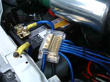キット内容です。 青い透明ケーブルがかっこいい!端子やバッテリーターミナルも金メッキで見栄えがよくなりそうです(^_^;) |