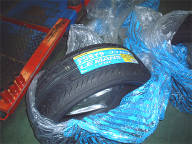 これが新しいタイヤです。 ローダウンには定番のDUNLOP LEMANS LM702です。通常の形状よりショルダー部分が丸くなっているので、角がフェンダーに当たりにくい形になっています。 さらにσ(^_^)は少し引っ張り気味になるように(ホイールが7.5Jなので極端な引っ張りではありませんが)、サイズを215/40-18にしてみました。 |