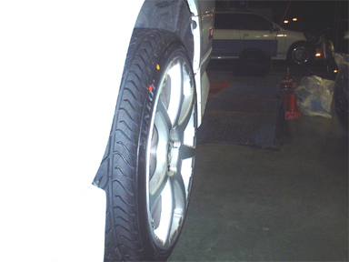 適度な引っ張り具合になり、ホイールのラウンドも強調されてすごくかっこよくなりました! リムをこすらないように注意しないといけませんね(^_^;) また以前気にしていたリアのツメ辺りもかなり余裕が出来ました。 画像はすごくフェンダーとの隙間がありますが、もちろんジャッキアップしてるからです(^_^;)。225から215にしたため、以前より隙間が4mm空いてしまうので車高調で5mmダウンさせました。しかし車高的にはトータル13mmダウンとなってしまったので、エアロも注意しないといけません(^_^;) なおタイヤは窒素を入れました。 |
