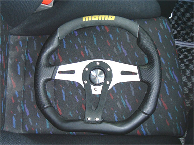 以前からDシェイプのステアが欲しいなあと思っていたのですが、最近のスポコンブームで装着率が多い、momoのトレックをヤフオクでゲットしました。 中古ですが程度もよく、出品最中にダメもとで即決をお願いしましたら、快く了承してくださいました。出品者のKさん、本当に感謝です\(^O^)/ |
