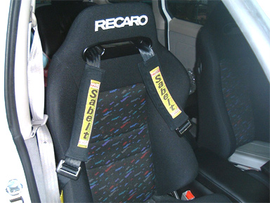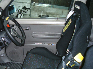 先日kamechanさんから譲って頂いた、サベルトの4点がありまして、レッドとブラックのが1つずつあって、どちらを装着しようかと思っていたのですが、ブラック基調の室内と、トレックがブラック&イエローステッチのmomoのロゴなので、こちらもブラックのサベルトにしてみました。 アンカーボルトを購入してないんで、とりあえずシートに着けてみただけの飾り状態です(^_^;)なんで今の状態で4点式締めても効果0(爆) |