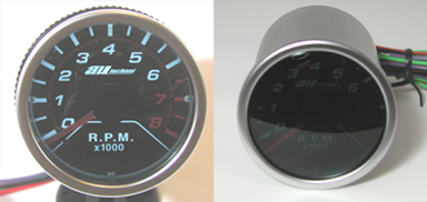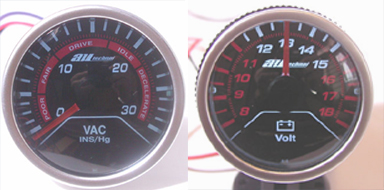 というわけで完成♪ なかなかいい雰囲気になりました。 電源を入れる前はオプティトロンメーターのように全くのブラックで、電源が入ると文字盤が浮き出ます。 また、電圧とタコはDefiメーターのようにオープニングセレモニー(電源入れると一旦針が最高値まで振る)があります。 |