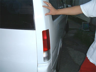 ダブルナットさんのヤフオク失敗談(^_^;) 先日ヤフオクで落札したテールカバー。。。。なんかおかしいですね(^_^;)そうです、ランプの開口部がずれてしまってます(リア部が狭く、サイド部が広い)。やられた〜って感じですね(^_^;) ちなみにこのカバーもここCAR CLUB TOPさんで下半分をカットしてハーフカバーにしてもらう予定だそうです。 |