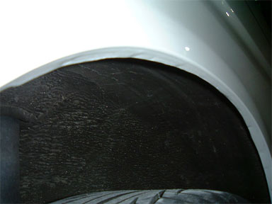 んで、こちらはカット後。 最初はスポット手前ギリギリまで削ったのですが、まだちょっと不安なので、思い切ってスポット気にせずカットしてもらいました(^_^;) 山田さんがおっしゃるにはVIPカーみたいにツメ全部カットしちゃったらやばいけど、フェンダーの上部の部分だけのカットだから内側が剥がれることはないだろうとのこと。ちゃんとコーキング&筆塗りですが塗装もして頂きました\(^O^)/ これで安心して走れますねv(^^)v |