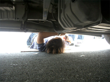 先日の天保山での自己満足な撮影会MTGで、サイドを着手してみました。 エアロにL字のステーを装着し、そこにネオン管を付けようと思い、潜り込んで作業してたのですが、3つほど付けたところで、ネジが足りないことが判明(;^_^A アセアセ しかしこんなところの近くにホームセンターがあるはずもなく、そこで作業は断念。。。。(T.T) |