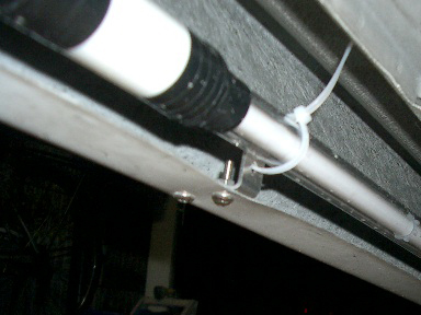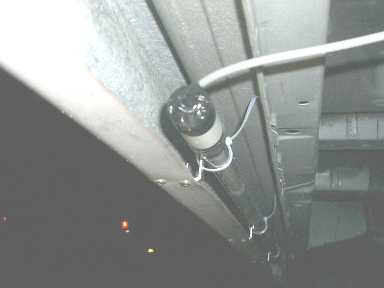 そして1週間後、夜中11時から午前2時半までと次の日の午前を使って作業しました。しかし夜中の孤独な作業は寂しいですね(;^_^A アセアセ 画像のようにサイドステップにステーをつけ、そこにタイラップ留めしました(カットしてませんね(^_^;)) 黒い部分は3Mのテープで防水処理しています(さらに内部はコーキング処理し、2重に防水してます(^_^;)) |
