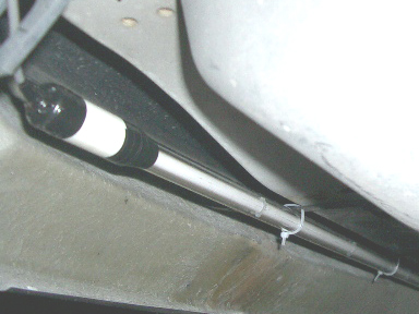 フロントはエアロとボディとの間に補助ステーをつけてあるので、そこにぶら下げました。 |